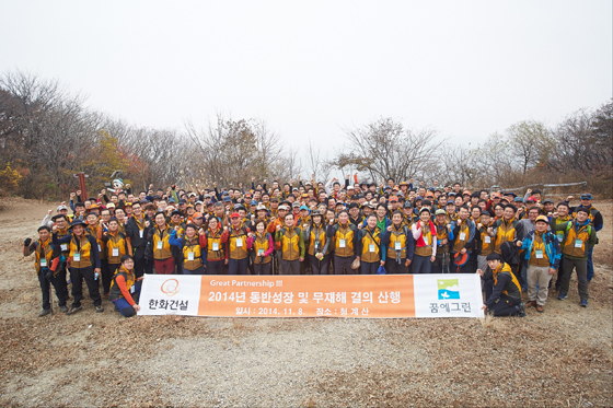 한화건설의 동반성장 결의산행은 그룹 김승연 회장의 경영철학인 “함께 멀리” 정신을 기반으로 협력사와의 동반성장을 실현하기 위해 지난 2007년부터 매년 진행되고 있다.