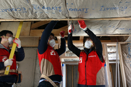 롯데홈쇼핑은 ‘나눔 릴레이’의 세 번째 후원단체로 해비타트를 선정하고 임직원 30여 명과 함께 이번 집짓기 봉사활동을 실시했다. 이날 봉사활동에 참여한 롯데홈쇼핑 임직원들은 총 9시간에 걸쳐 방음·방수 처리 작업, 석고보드 재단 후 벽과 천장에 부착하는 공정 등 집 완공을 위한 건축 작업에 참여했다.