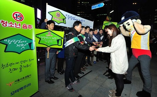 또 강남역 주변의 편의점과 식당 등 주류판매업소들을 찾아 다니며 젊은이들에게 술을 팔 때 반드시 신분증을 확인하자는 내용의 게시물을 업주들에게 나눠주는 'Show ID 캠페인'도 벌인다.