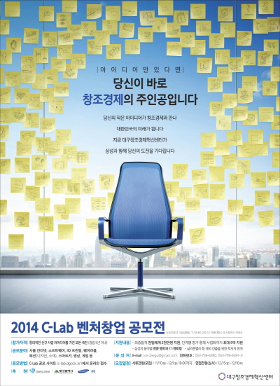 삼성은 창조적인 아이디어를 가진 스타트업을 육성하기 위해 대구 창조경제혁신센터와 함께 '2014 크리에이티브 랩(C-Lab) 벤처창업 공모전'을 진행하고 있다.
