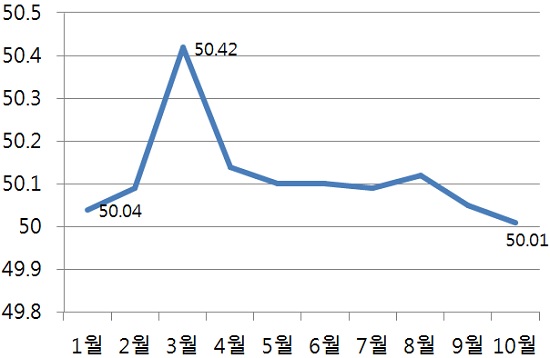 그러나 10월 점유율 50.01%는 12년여만에 가장 낮은 수치다.
