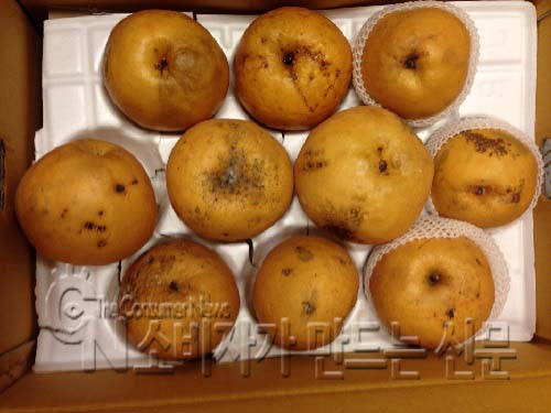상자 안에 들어 있는 10여 개의 배 중 먹을만한 게 하나도 없었다. 배송 중 썩거나 멍이 들기도 했지만 울퉁불퉁한 것이 애초에 도저히 판매가 불가능한 하품으로 구성된 상자였다.