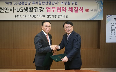 LG생활건강(대표 차석용)과 천안시(시장 구본영)는 16일 ‘천안 LG생활건강 퓨쳐일반산업단지’조성 및 공장 설립에 관한 업무협약을 체결했다.