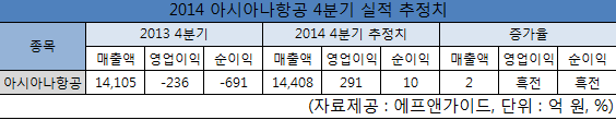 증권정보제공업체 에프앤가이드의 분석 결과 아시아나항공의 4분기 실적도 크게 개선될 것으로 나타났다.