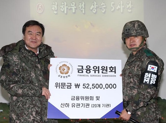 신 위원장 외에 하영구 은행연합회장, 박종수 금융투자협회장, 이수창 생명보험협회장, 장남식 손해보험협회장, 김근수 여신금융협회장, 이기영 화재보험협회 이사장, 박재식 증권금융 사장 등 18명의 유관기관 및 협회 대표자들이 5천250만 원의 성금을 마련해 함께 방문했다.