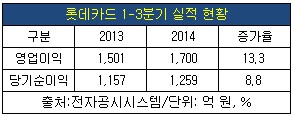 실적도 개선됐다. 롯데카드의 3분기 누적 영업이익은 1천700억 원으로 전년 동기 대비 13.3%, 당기순이익은 1천259억 원으로 8.8% 증가했다.