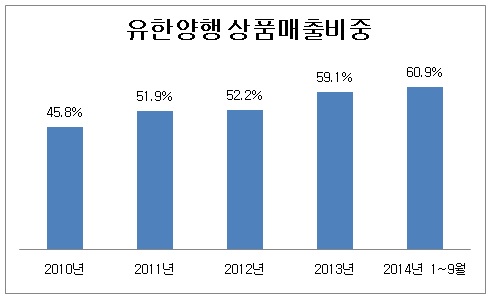 실제로 이 회사는 2010년 45.8%에 불과했던 상품매출비중이 올해 9월 말 60.9%로 급상승했다. 이에 힘입어 매출이 6천600억 원대에서 지난해 9천억 원대, 올해는 1조 원을 넘어섰다.