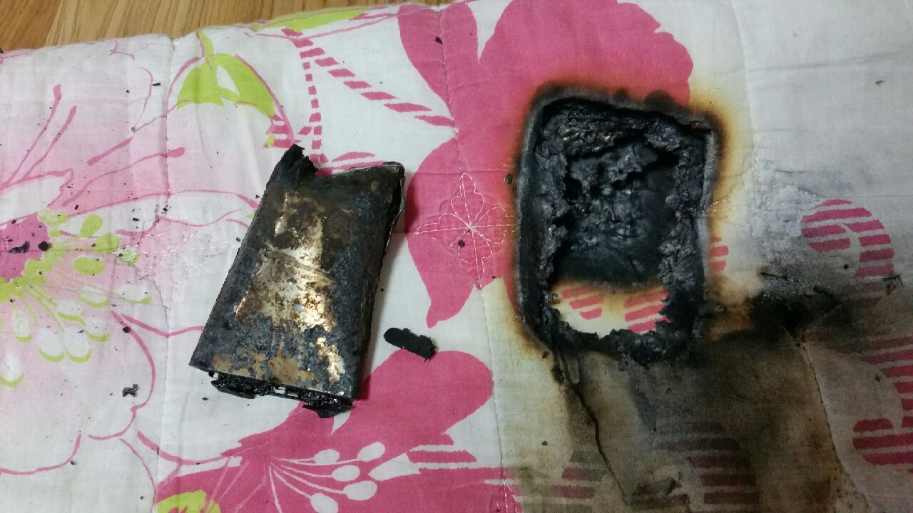 연기를 빼내고 나서야 거실에 펼쳐놓은 이불위에 휴대전화 배터리가 부풀어 오른채 시커멓게 재를 남긴 상태임을 확인했다.