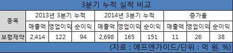 올 3분기 보령제약의 누적 매출은 2천698억 원으로 지난해 3분기 2천414억 원에 비해 11% 증가했다. 영업이익은 165억 원으로 지난해 122억 원에 비해 26% 증가했으며 순이익은 지난해 94억 원보다 38% 증가한 151억 원을 기록했다.