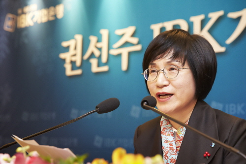 ▲ 내년 '기술금융'에 대한 업무 추진계획을 발표 중인 권선주 IBK은행장.