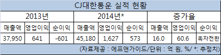 하지만 올해 통합 후유증이 완화되면서 계약물류(CL) 사업부문의 수익성이 개선되고 해외직구 열풍으로 물동량 증가하면서 매출과 영업이익을 크게 늘렸다.