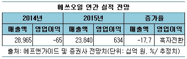 에프앤가이드에 따르면 에쓰오일의 내년 매출은 23조8천400억 원으로 올해보다 17.7% 감소하지만 영업이익은 6천340억 원으로 적자에서 벗어날 전망이다.