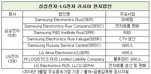 최근 러시아 상황의 녹록치 않은 편이다. 러시아에 5개 법인을 두고 있는 삼성전자는 지난 2012년 매출이 6조7천122억 원에 달했으나 지난해 5조8천억 원대로 13.4%나 감소했다. 같은 기간 순이익은 218억 원 측자에서 111억 원 적자로 돌아섰다.