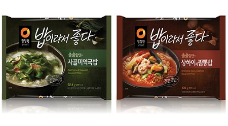 '밥이라서 좋다'는 튀기지 않은 국산 쌀을 사용해 라면처럼 간편하게 끓여먹는 국밥 제품.