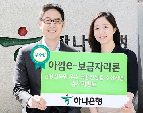 하나은행(직무대행 김병호)이 금융감독원 주관 ‘2014 우수 금융신상품’에서 ‘아낌e-보금자리론’의 우수상 선정을 기념해 이날부터 다음달 27일까지 고객 감사 이벤트를 실시한다.