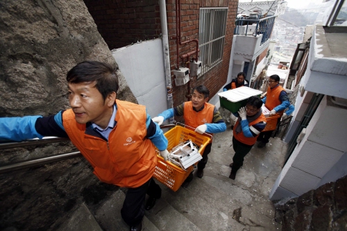 2015년 정기인사에서 승진한 한화그룹 서울지역 신임 임원 17명이 14일 오전 서울 종로구 창신동 일대 소외계층 가정을 찾았다. 이들은 오래된 벽지와 장판 등을 교체하고, 생활용품과 쌀 등을 구입해 독거어르신 등 소외 이웃들에게 전달했다.