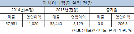 올해도 아시아나항공의 영업이익은 유가 하락에 힘입어 크게 늘어날 전망이다.