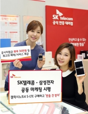 SK텔레콤(사장 장동현)은 삼성전자(대표 권오현·윤부근·신종균)와 함께 ‘갤럭시노트4 S-LTE’ 단말기 구매 고객을 대상으로 공동 마케팅을 실시한다고 25일 밝혔다.