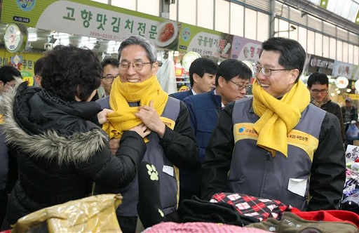 진웅섭 금융감독원장은 전통시장 상인들을 만나 금융관련 애로사항을 직접 챙기고 윤종규 KB국민은행장과 함께 신영시장에서 전통시장 상품권으로 쌀, 과일, 정육 등 어려운 이웃에게 전달될 식료품과 생필품을 직접 구입했다.