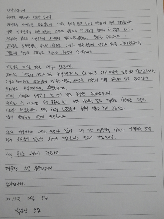 박 대표는 “5년 동안 앞만 보고 달려오다 보니 세심하게 살피지 못한 것이 정말 많았다”며 “소통 과정에서도 실수가 있던 것으로 보고 임직원 의견을 수렴해 내부 소통 및 교육을 강화할 예정”이라고 전했다.