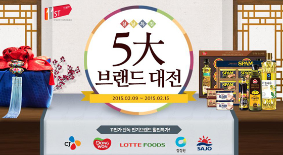 11번가는 오는 15일까지 ‘설날특집 5대 브랜드대전’을 열고 인기 가공식품을 한데 모은 35종의 선물세트를 할인해 판매한다.