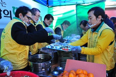 S-OIL은 2007년부터 9년 째 임직원들이 참여하는 영등포 쪽방촌 주민과 노숙자들을 위한 ‘사랑의 떡국나누기’ 봉사 활동을 펼치고 있다.