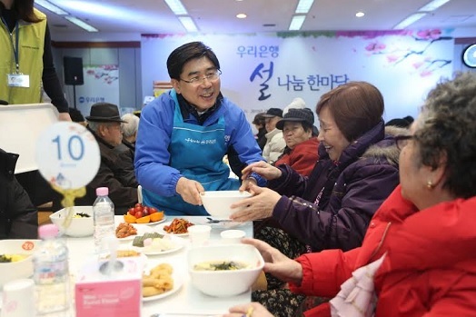 이 날 행사에 참석한 이광구 은행장과 임직원 및 계열사 CEO들은 어르신들에게 떡국을 배식하고, 노래자랑을 곁든 경로잔치를 개최했다.