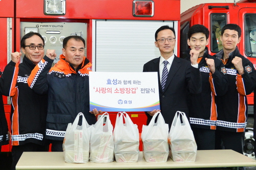 효성(대표 이상운)이 설 연휴를 앞두고 마포소방서 소속 염리 119안전센터 소속 소방관들에게 ‘사랑의 소방장갑’을 전달했다.