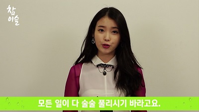 영상에서 아이유는 밝은 목소리로 "한겨울에 참이슬 광고 찍었던 때가 얼마전 같은데 벌써 2015년의 봄을 기다리고 있습니다. 양의 해에 기대하셨던 일들 다 잘 지켜지고 있나요?"라며 "2015년 슬이술술 풀리시길 바라면서 저 아이유도 참이슬도 많이 사랑해 주세요"라는 멘트와 함께 새해 인사말을 건넸다.