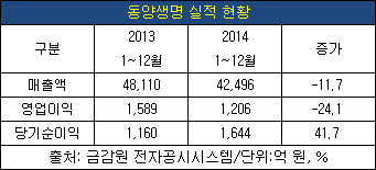 이에 대해 동양생명 관계자는 “결산월이 12월과 3월로 각기 다르게 때문에 무조건 1~12월로 계산해서 보는 것은 무리가 있다”고 설명했다.