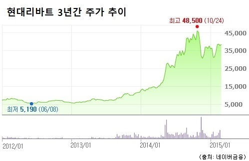 현대리바트 주가는 지난해 10월 24일 장중 한때 4만8천500원까지 치솟았으나 3분기 실적이 기대치를 밑돈데다 이케아의 국내 매장 오픈에 따른 우려로 3만 원 초반까지 하락했다. 이후 보합세를 보이다가 최근 꾸준한 회복세를 이어가면서 부진을 털어내고 있다.