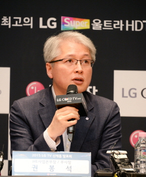 24일 권봉석 LG전자 부사장(HE사업본부장·사진)은 서울 양재동 소재 서초R&D캠퍼스에서 열린 '2015형 LG TV 신제품 발표회'에서 이같이 밝혔다.