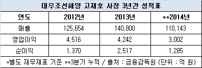 대우조선해양은 지난해 수주실적 149억 달러로 목표치(145억 달러)를 넘겼다. 조선 3사 중 수주목표를 달성한 곳은 대우조선해양이 유일하다.