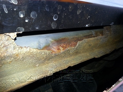 # 2007년식 SUV차량을 만 8년 간 운전 중인 대구 달서구에 사는 박 모(남)씨. 지금까지 무사고에 차량 정기점검도 꾸준히 받고 있었다고. 하지만 지난 3월 차량 바닥재를 뜯었다가 부식으로 큰 구멍이 뚫려있는 것을 발견했다. 이 외에도 차량 양쪽 '사이드 스텝'과 운전석 도어 아래쪽 등 곳곳에 흉물스러운 녹이 슬어 있었다.. 출고년수를 감안해도 납득하기 어려울 정도의 부식 상태라고 지적한 박 씨는 "부식이 너무 심해 운행 중 갑자기 어느 부위가 내려앉지는 않을지 겁이 난다"고 난감해했다.