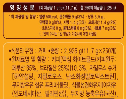 ‘맥심 모카골드 마일드 커피믹스’, ‘맥심 아라비카 100 커피믹스’도 영양성분 표시가 추가됐다. 다만 제품 크기에 따라 소용량 제품은 영양성분 표시가 없었다.