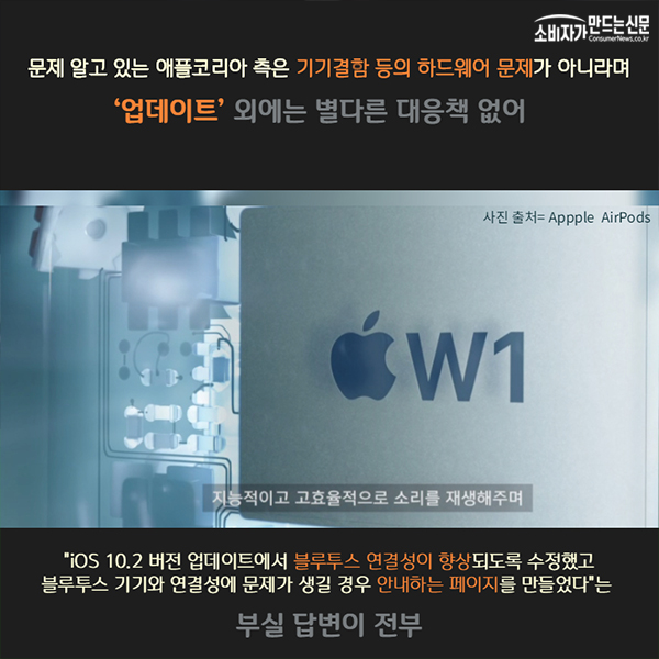 "iOS 10.2 버전 업데이트에서 블루투스 연결성이 향상되도록 수정했고, 블루투스 기기와 연결성에 문제가 생길 경우 안내하는 페이지를 만들었다"는 부실 답변이 전부.