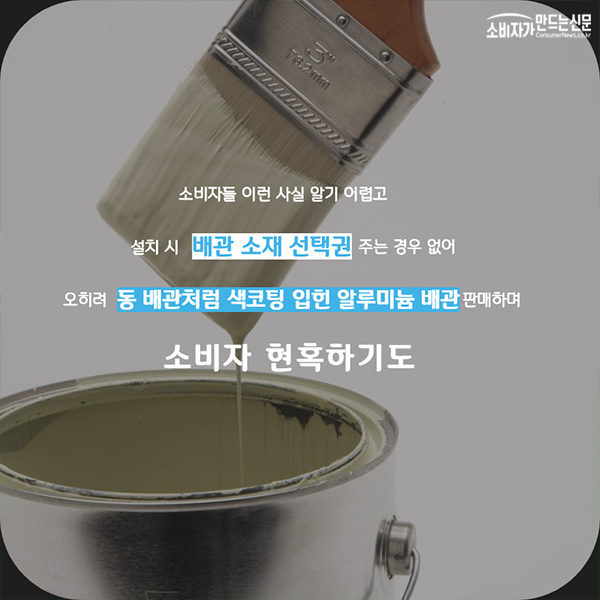 오히려 동 배관처럼 색코팅 입힌 알루미늄 배관 판매하며 소비자 현혹하기도