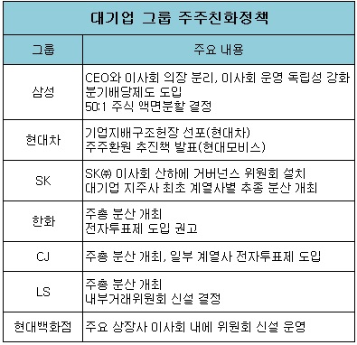 재벌 그룹의 한 관계자는 “정부가 김상조 공정거래위원장을 앞세워 재벌개혁 의지를 보이는 상황에서 주요 대기업들이 주총시즌을 맞아 주주친화 정책 확대에 적극 나서는 움직임을 보이고 있다”고 말했다.