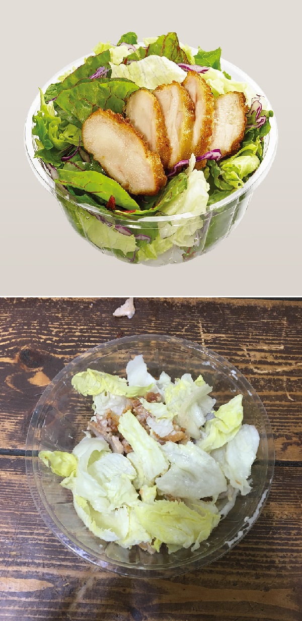 URL복사 기사공유하기 스크랩 프린트 메일보내기 글씨키우기 간편식 음식점에서 샐러드를 주문한 소비자가 광고와 다른 제품을 받고 분통을 터트렸다. 광고 사진에는 치킨도 두툼하니 푸짐해보였고 채소도 풍성했는데 직접 받아든 샐러드는 딴판이었다고. 조각난 닭고기는 듬성듬성 보였고 채소는 양상추 한가지 뿐이었다고. 소비자는 “이 정도로 다르게 나온다면 광고가 아니라 사기라고 봐야 되지 않느냐”며 충격에 빠졌다.[소비자가만드는신문=조윤주 기자] 저작권자 © 소비자가 만드는 신문 무단전재 및 재배포 금지 조윤주 기자 다른기사 보기 URL복사 기사공유하기 주요기사 주병기 공정위원장, "총수 일가 부당한 지배력 확대 강력히 제재" 특징주 기사 이용한 선행매매로 112억 부당이득 챙긴 전직 기자 구속 경기도 통큰세일 의정부서 개막...김동연 지사 “올해 예산 3배 확대” 시세하락손해 보상, 출고 5년 이하에 수리비 차량가액 20% 넘어야 블프·코세페 등 할인 행사 몰린 11월, 택배 민원 54% 급증 넥슨, '2025 던파 페스티벌' 역대 최대 규모로 23일까지...대규모 겨울 업데이트 공개