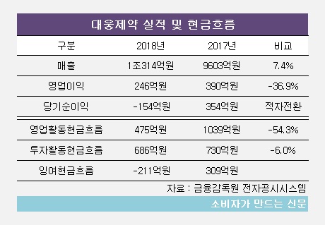 금융감독원 전자공시시스템에 따르면 대웅제약은 지난해 매출이 1조314억 원으로 전년에 비해 7.4% 증가하며 사상 최대 규모를 기록했다. 다만 영업이익은 246억 원으로 36.9% 감소했고, 당기순이익은 354억 원에서 -154억 원으로 적자전환 했다.