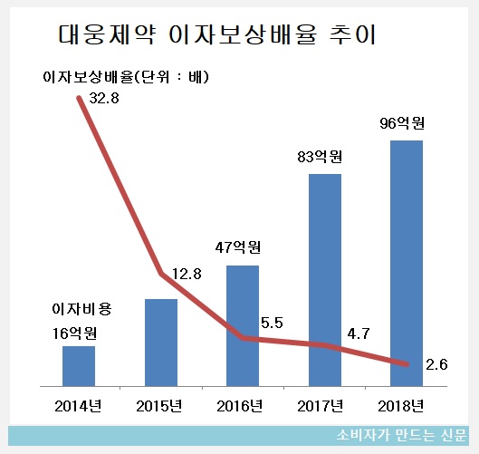이자비용 규모도 늘고 있는 추세다. 2014년 16억 원이던 이자비용은 2016년 46억 원으로 3배가량 늘었고, 지난해에는 96억 원으로 증가했다.