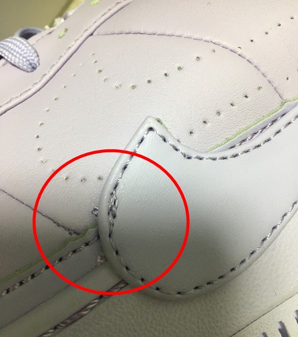 ▲바느질선이 엉망인 가품 나이키 운동화.