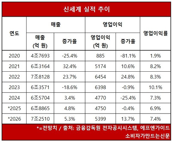 20일 증권가에 따르면 신세계의 올해 매출은 6조8865억 원, 영업이익은 4750억 원으로 전망된다. 매출은 4.8% 증가하고 영업이익은 0.4% 감소하는 수치다.