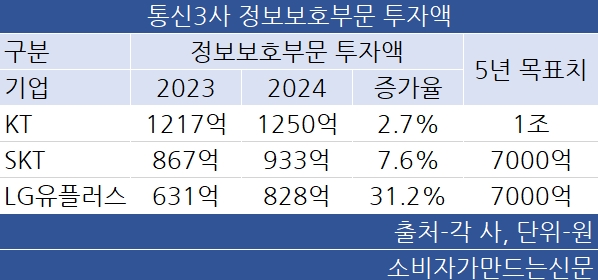 다만 매출액 대비 정보보호부문 투자액은 0.4~0.5% 수준으로 통신서비스 핵심 인프라를 관리하는 기업 규모에 비해 낮다는 지적이 나온다.