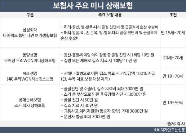 겨울 스포츠를 즐기다가 발생할 수 있는 사고에 대해 보장하는 미니 상해보험도 있다.