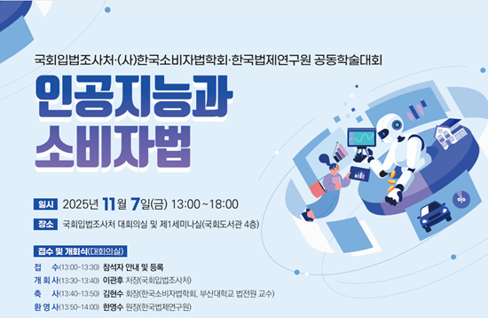 이번 학술대회는 '인공지능과 소비자법'을 대주제로 인공지능 기술의 발전이 소비자 거래 구조를 어떻게 변화시키고 있는지, 소비자법이 이를 어떻게 포섭하고 규율할 수 있는지를 다룰 예정이다.