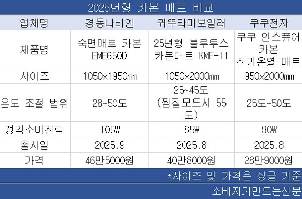 경동나비엔과 귀뚜라미보일러, 쿠쿠전자는 올 하반기 차별화된 카본매트 신제품을 잇따라 출시하며 소비자 공략에 나섰다. △경동나비엔은 'AI(인공지능) 기술'에 강점을 뒀고 △귀뚜라미보일러는 '찜질 기능'을 △쿠쿠전자는 '합리적인 가격'을 앞세우고 있다.