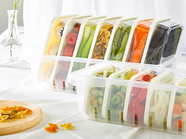 칸칸이 나뉘어져 내용물을 구분해 보관할 수 있는 ‘알알이쏙 용기’는 바닥면을 유연한 재질로 구성돼있다. 뚜껑 부분에 월, 일을 표시할 수 있는 슬라이더바가 있는 ‘약 300ml x 2구’ 용기는 보관일자를 체크하며 선입선출 관리에 좋다. ‘약 100ml x 4구’에는 고기, 채소 등 국거리를 1인분 용량으로 소분해두기 용이하다. 또한 ‘약 15ml x 15구’와 ‘약 7.5ml x 24구’는 얼음이나 완자를 얼려두는 용도 외에 ‘이유식 큐브’를 만드는 용도로도 사용할 수 있다.