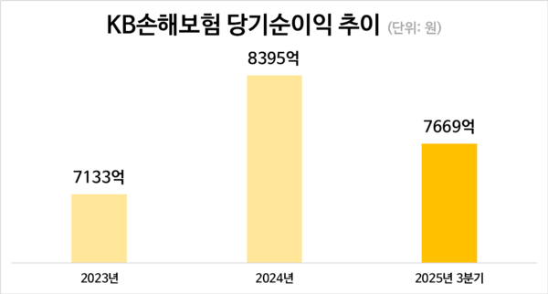 구 대표 취임 첫 해였던 지난해 KB손보의 당기순이익은 전년 동기 대비 17.7% 증가한 8395억 원을 기록했고 올해도 3분기까지 누적 순이익이 7669억 원으로 상승세를 이어갔다. 현재 추세로면 올해도 역대 최대 실적 경신이 가능하다.