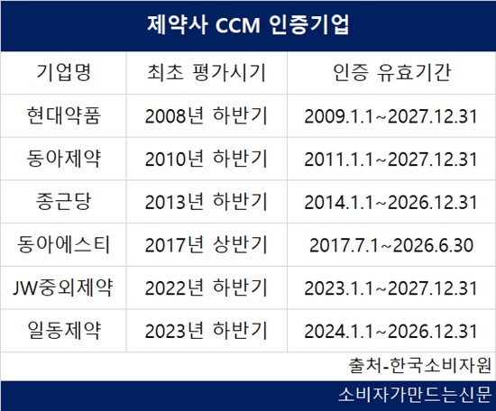 제약업계에서는 △종근당 △동아제약 △현대약품 등 3곳이 10년 이상 CCM(소비자중심경영) 인증을 유지하고 있는 것으로 조사됐다.